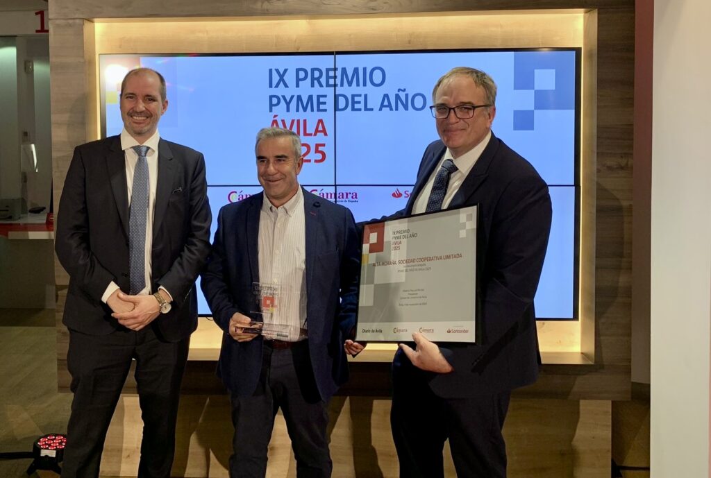 La Sociedad Cooperativa Alta Moraña ha sido reconocida con el PREMIO PYME DEL AÑO 2025 DE ÁVILA, un galardón otorgado por el Banco Santander y la Cámara de Comercio de Ávila, en colaboración con la Cámara de España y El Diario de Ávila.